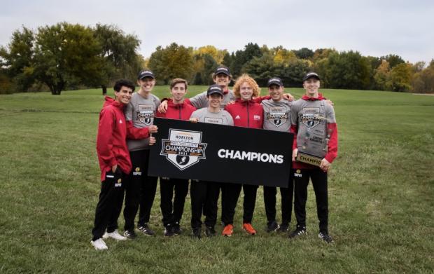 Me and my housemates after our team claimed the school's third consecutive Horizon League Cross Country Championship in 2021.